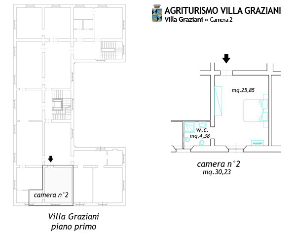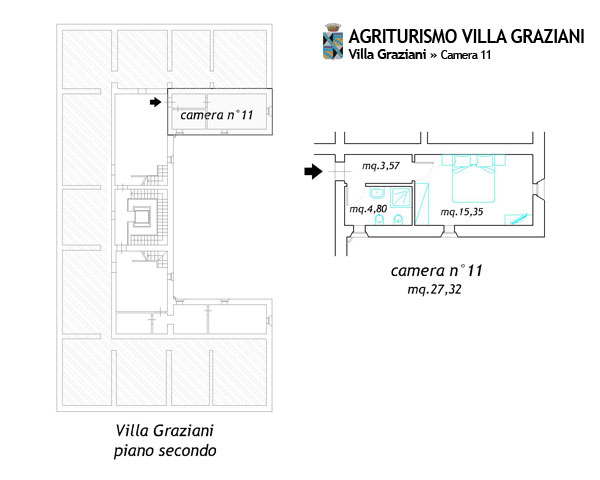L'Agriturismo Villa Graziani dispone di 12 camere (di cui 3 suite d'epoca), quattro per piano, a garanzia di quiete e tranquillità per i propri ospiti. Ognuna ci racconta una storia diversa, ricca di fascino e atmosfera d'altri tempi. Gli oggetti e gli arredi in esse custoditi ci fanno vivere e sognare cronache lontane, ma ancora vive nella memoria.
