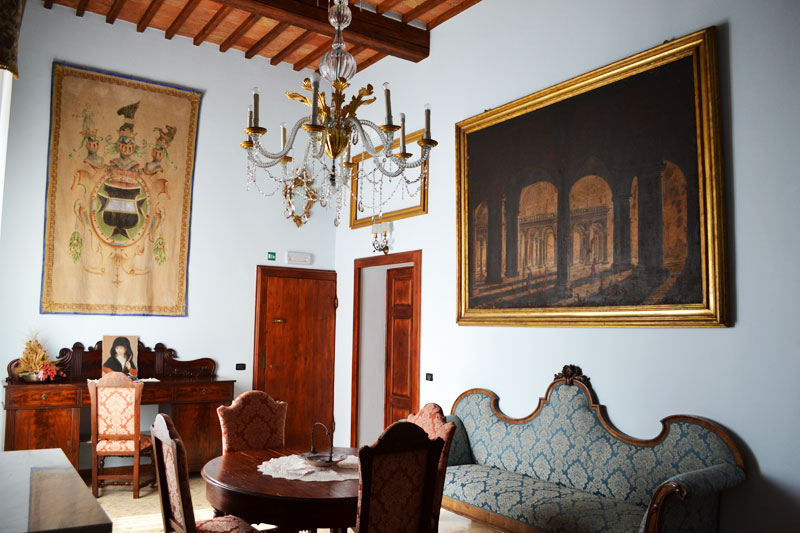 Le camere per gli ospiti e le relative aree di accesso non hanno niente da invidiare a piccoli musei privati: ovunque si volga lo sguardo ecco mobili e suppellettili originali, travature, marmi e pavimenti in cotto che ancora tramandano sospiri.